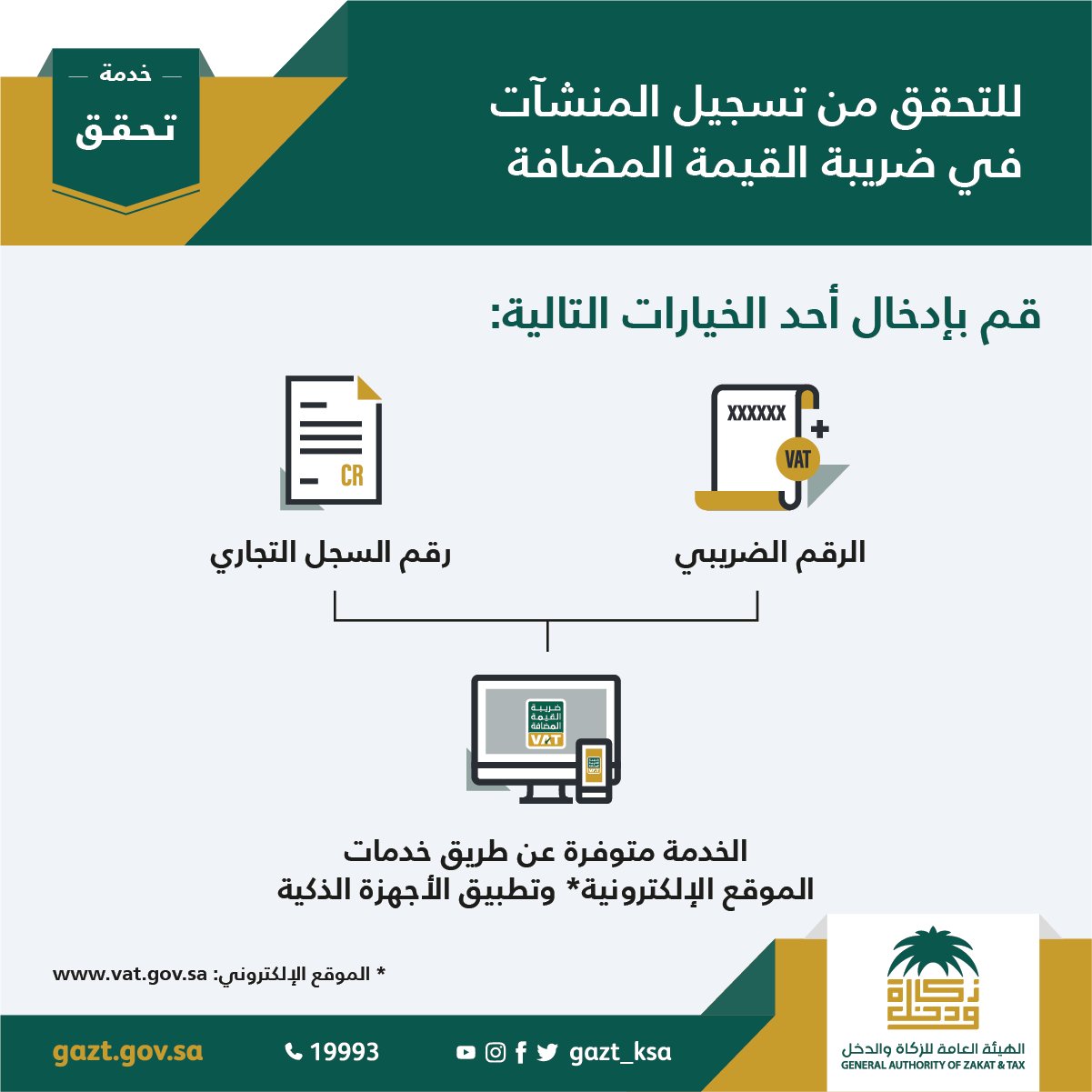التحقق من التسجيل في ضريبة القيمة المضافة