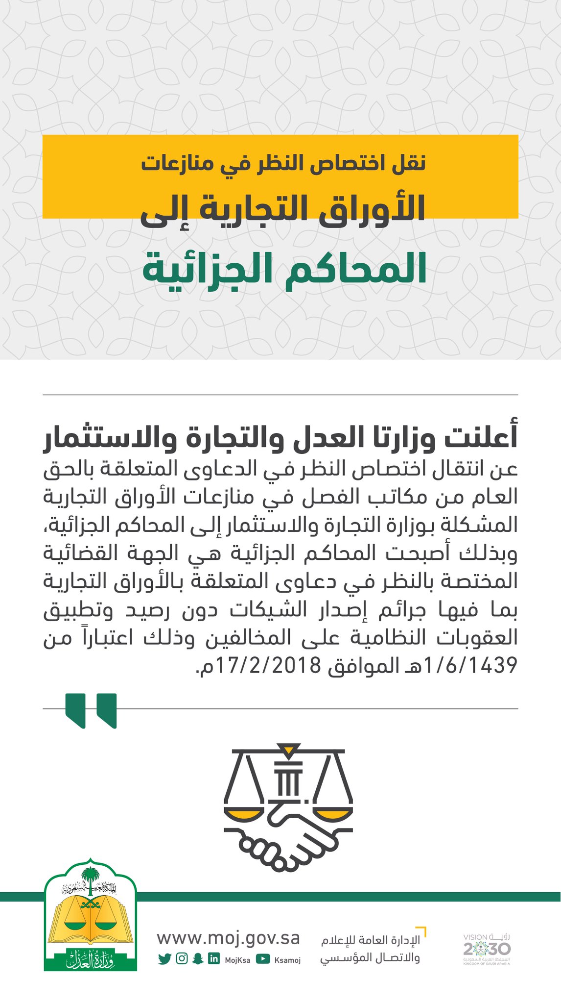 وزارة العدل Sur Twitter نقل اختصاص النظر في منازعات الأوراق