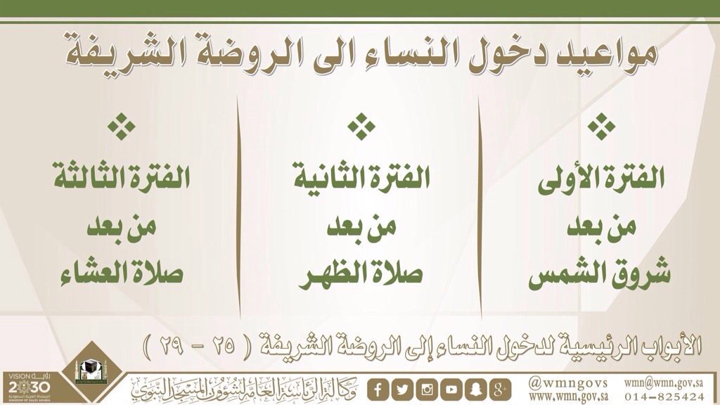 المدينة المنورة On Twitter مواعيد زيارة النساء للروضة الشريفة