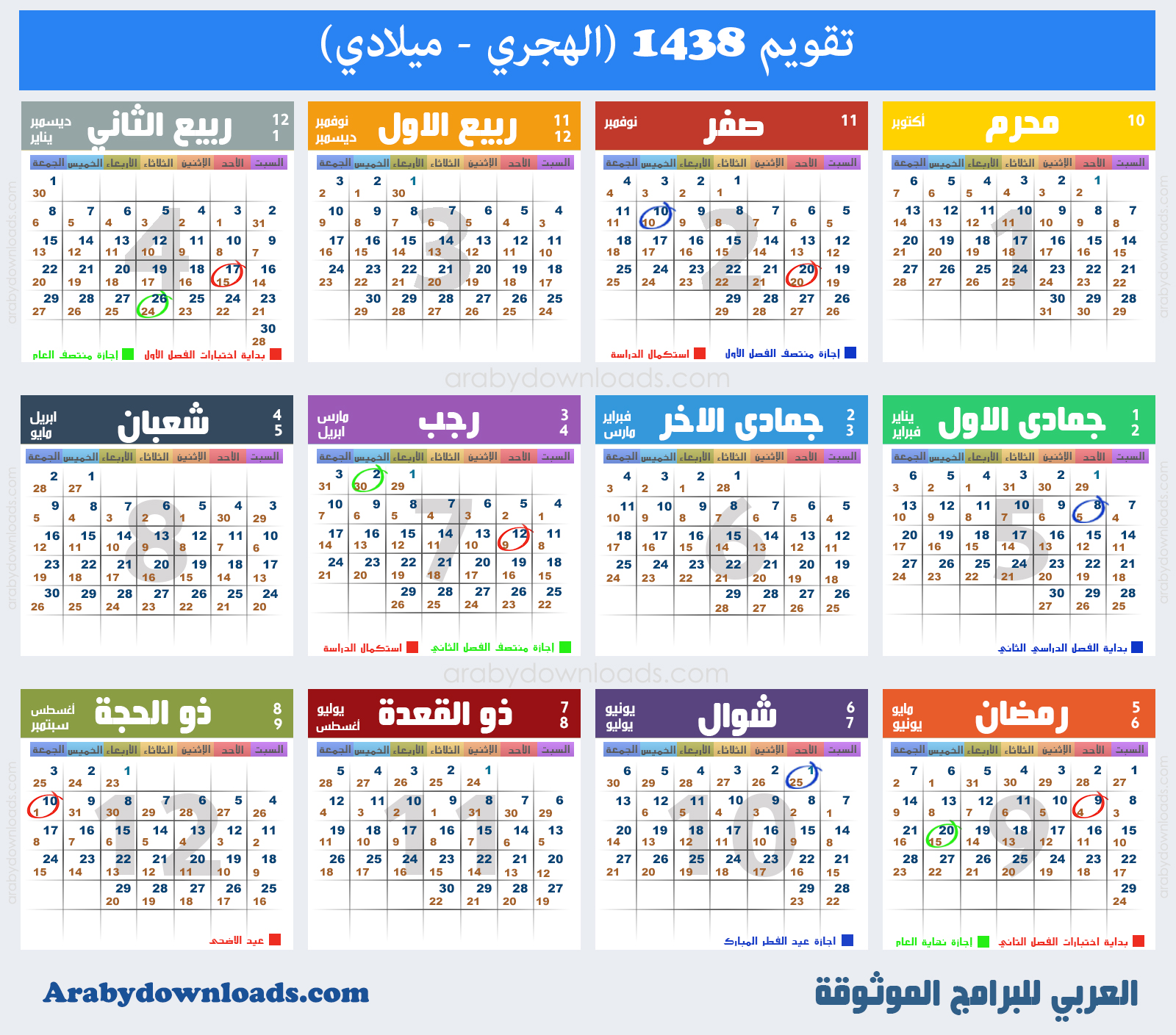 التقويم الهجري 1438 تقويم ام القرى لعام 1438 التقويم الميلادي