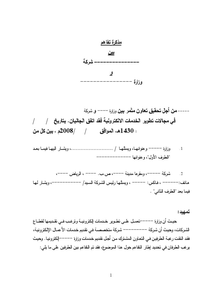 نموذج مذكرة تفاهم بين شركتين او شركة خاصة ومؤسسة عامة موارد بشرية
