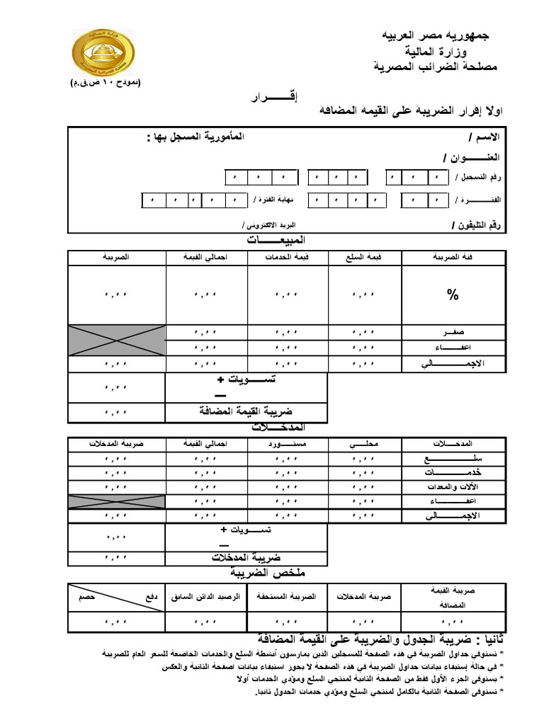 نموذج 10 ض ق م اقرار الضريبة على القيمة محاسب قانونى عصام نوفل فيسبوك