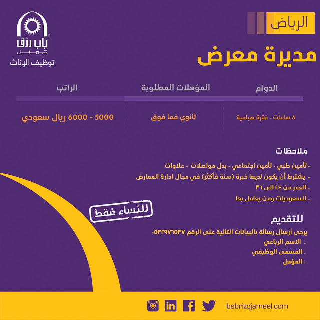 وظائف نسائية On Twitter وظائف وظائف نسائية تعلن شركة العرض